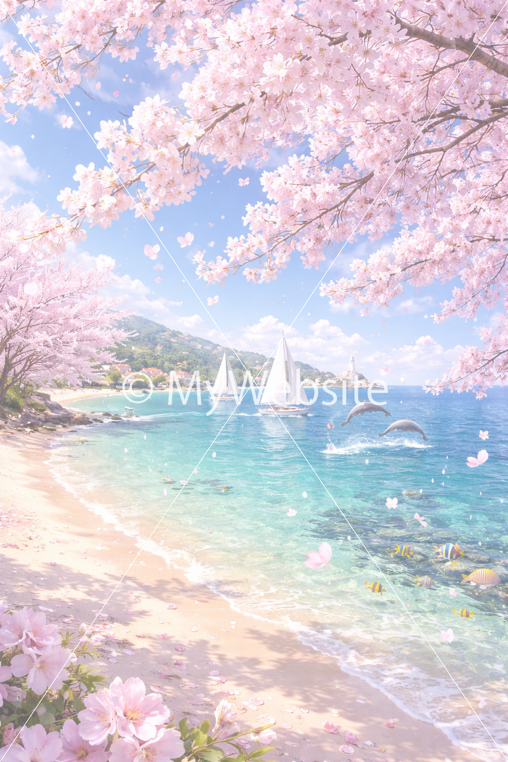 海,桜,綺麗