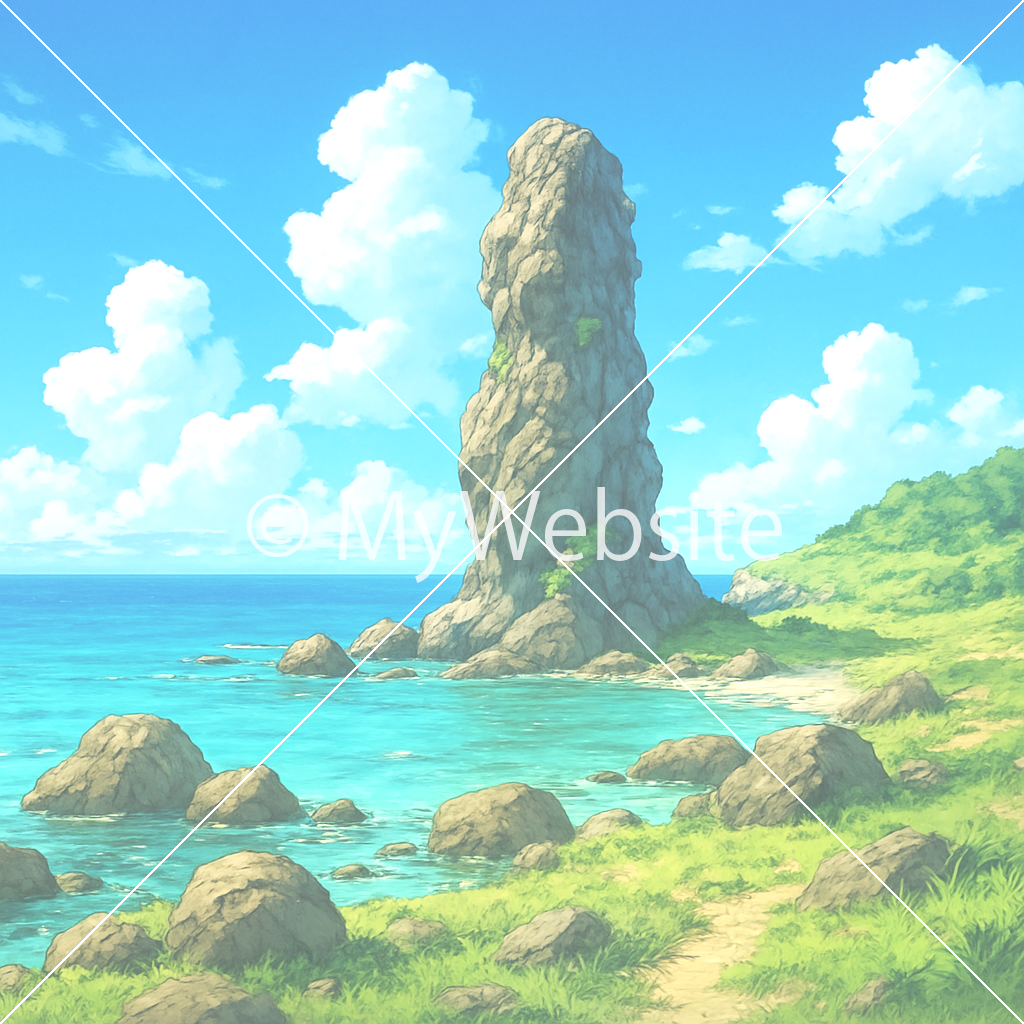 岩,海,青空,アニメーション,綺麗,スマホ壁紙