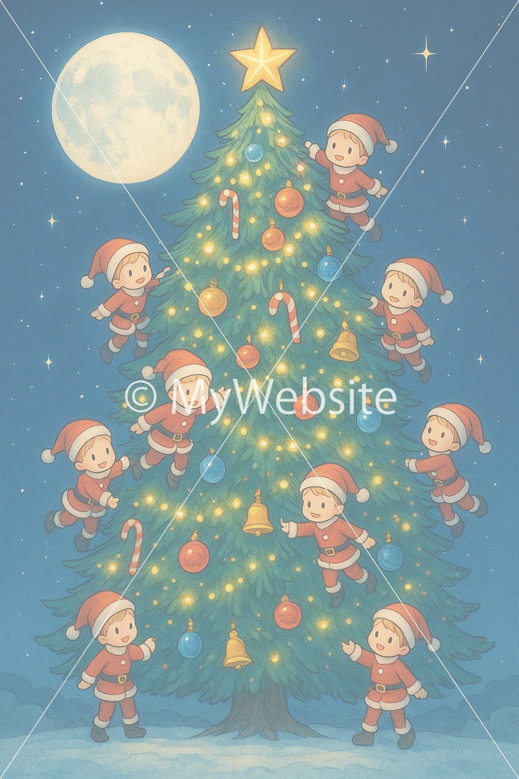 タイトル:クリスマスツリーとサンタクロース