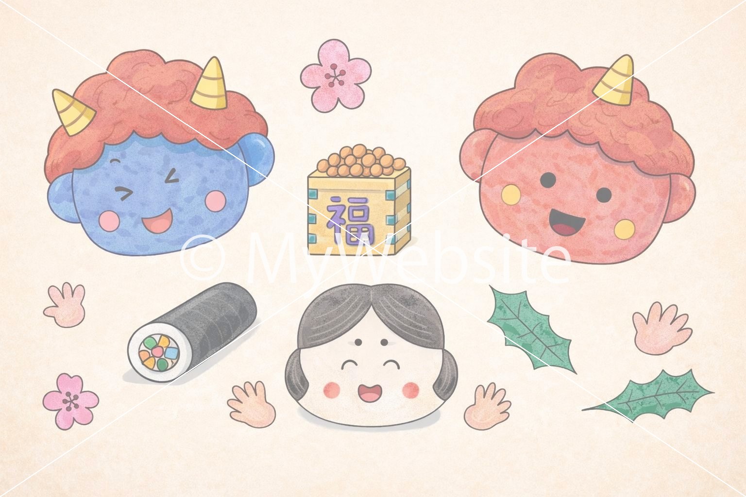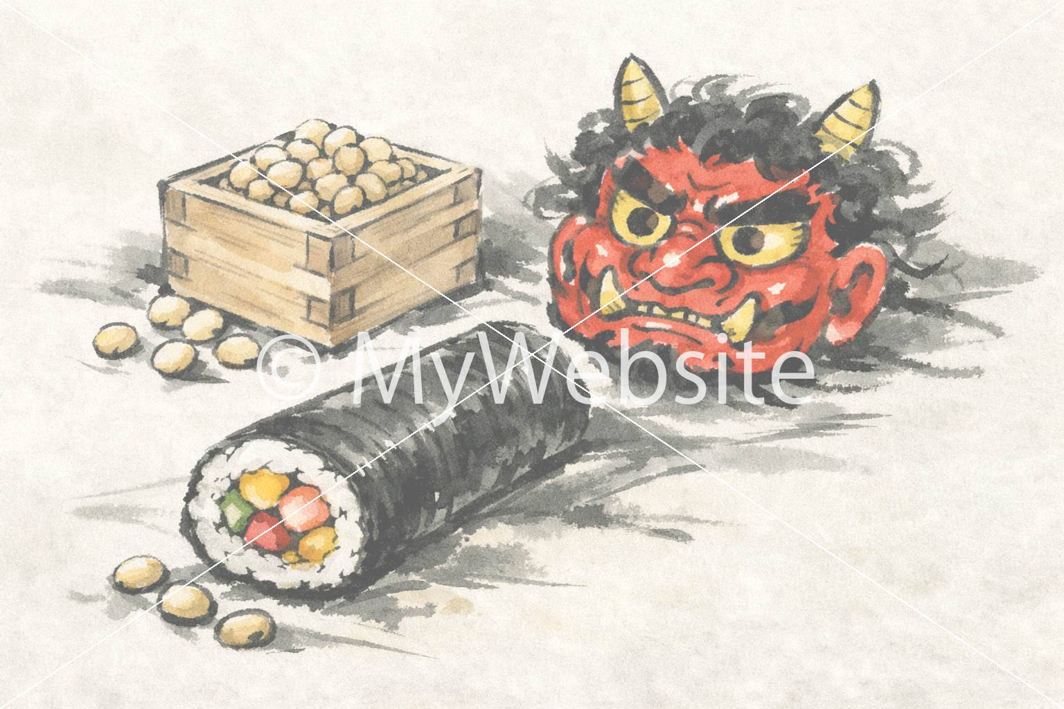 タイトル:鬼と豆と恵方巻