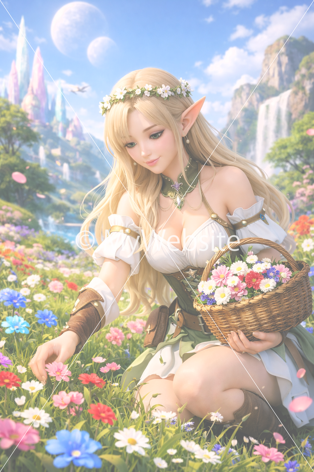 タイトル:花を摘むエルフ