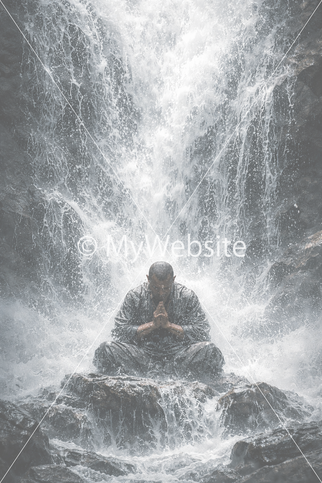 タイトル:滝に打たれる修行僧