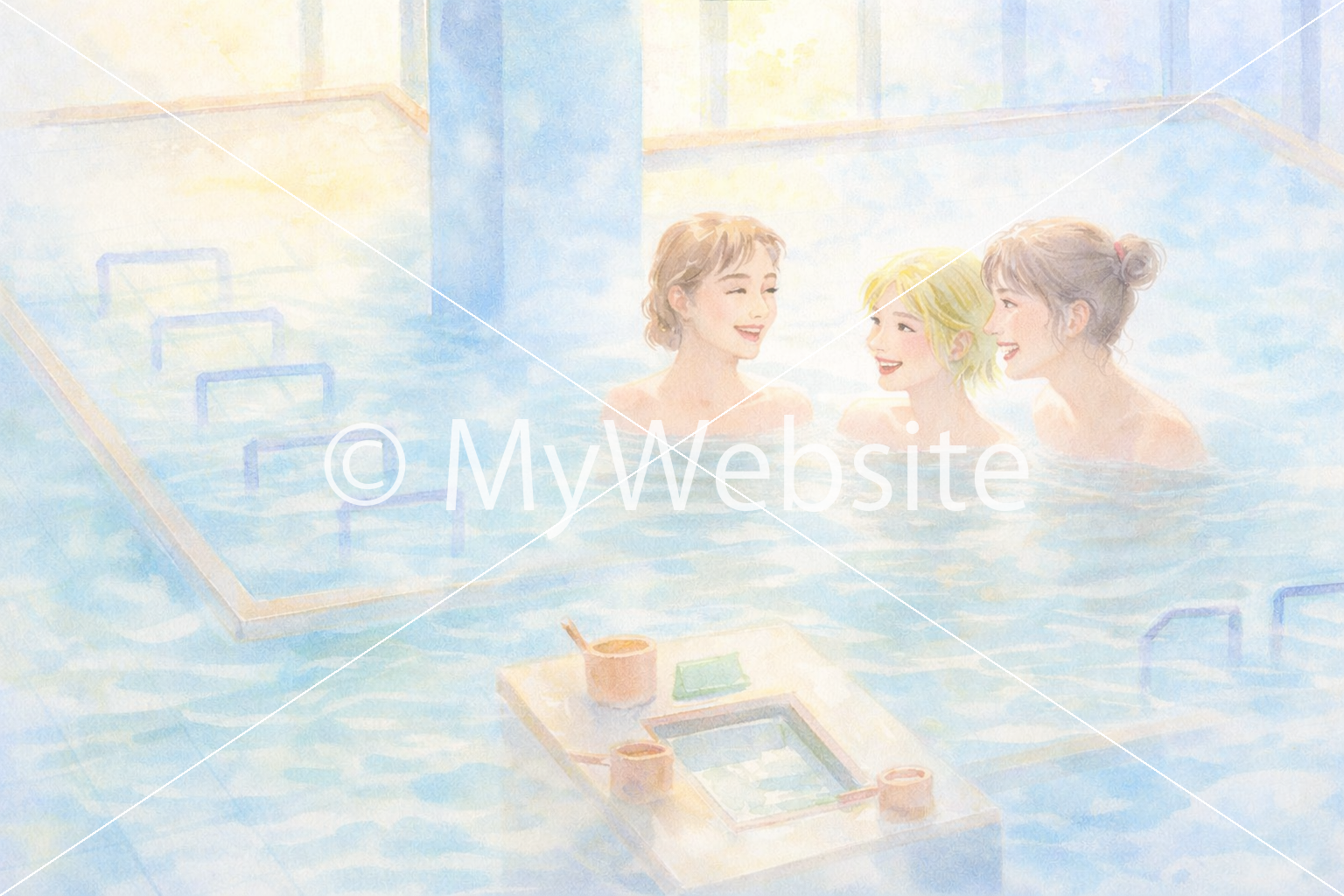 日常,銭湯,女性,水彩画,綺麗,鮮やか,楽しい,壁紙,ポスター