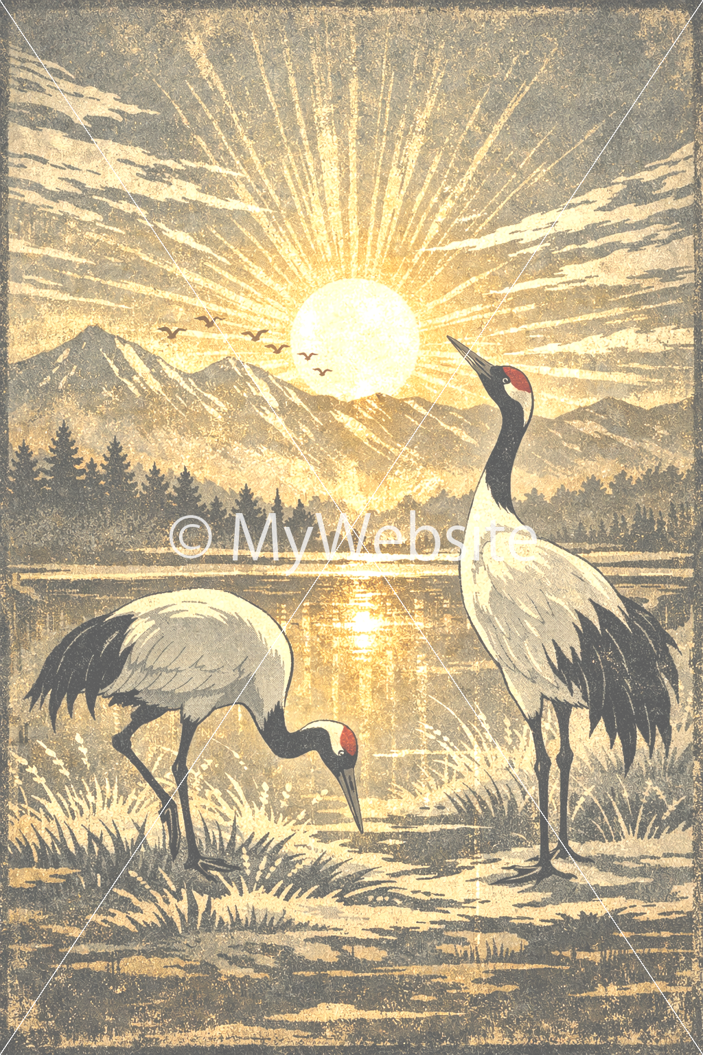 鶴,和風アート,太陽,綺麗,かっこいい,動物