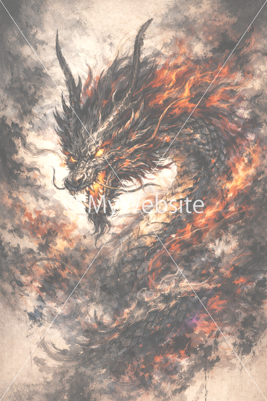 龍,虎,水墨画,日本アート,かっこいい,スマホ壁紙