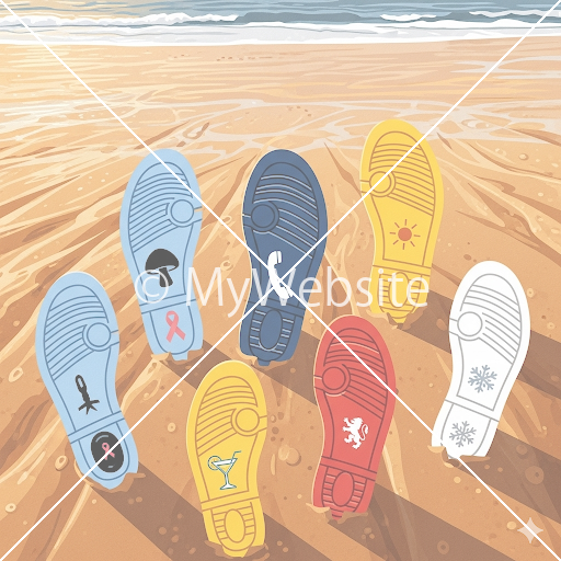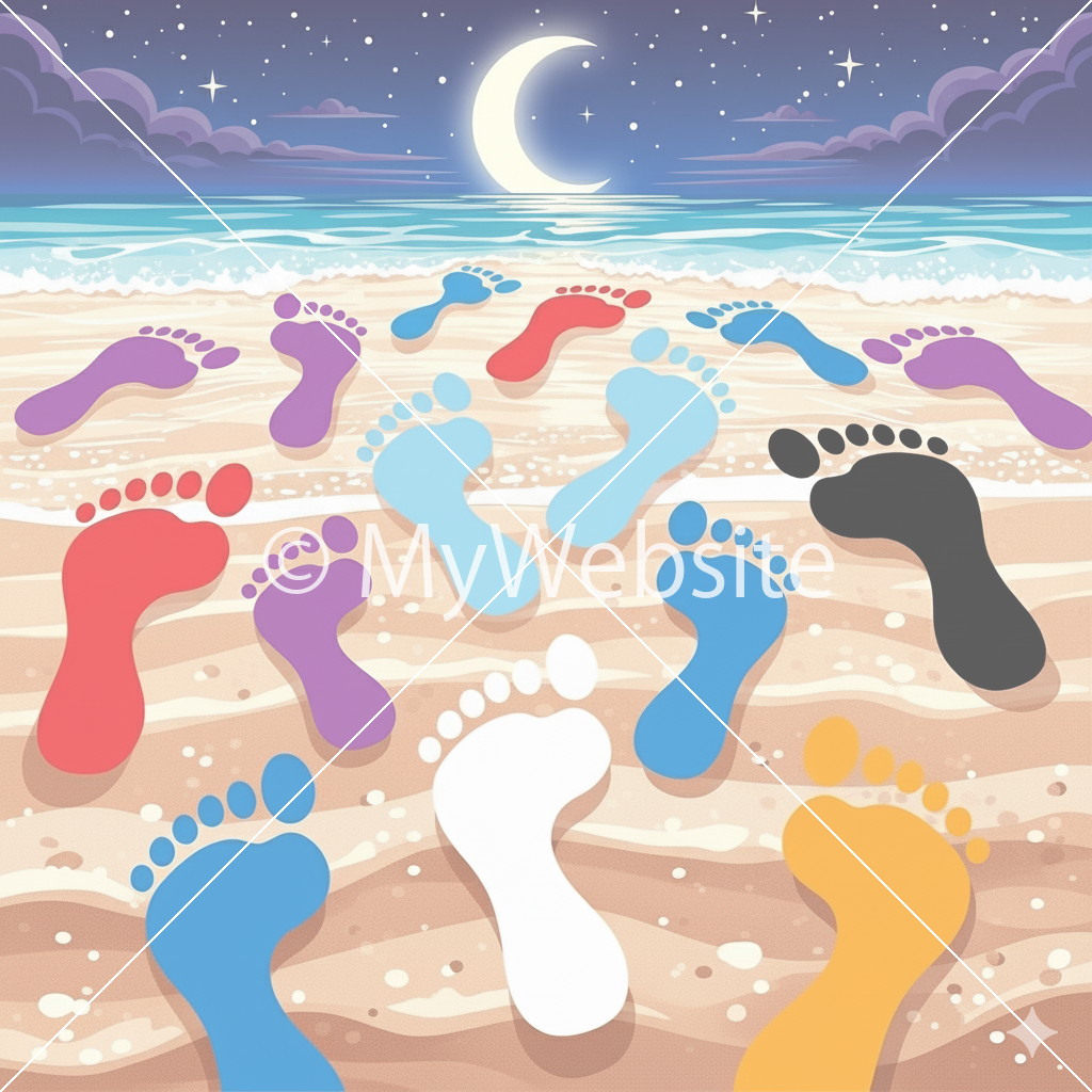 夏,波打ち際,足跡