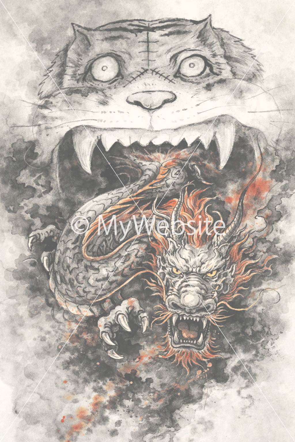 龍,虎,水墨画,日本アート,かっこいい,スマホ壁紙