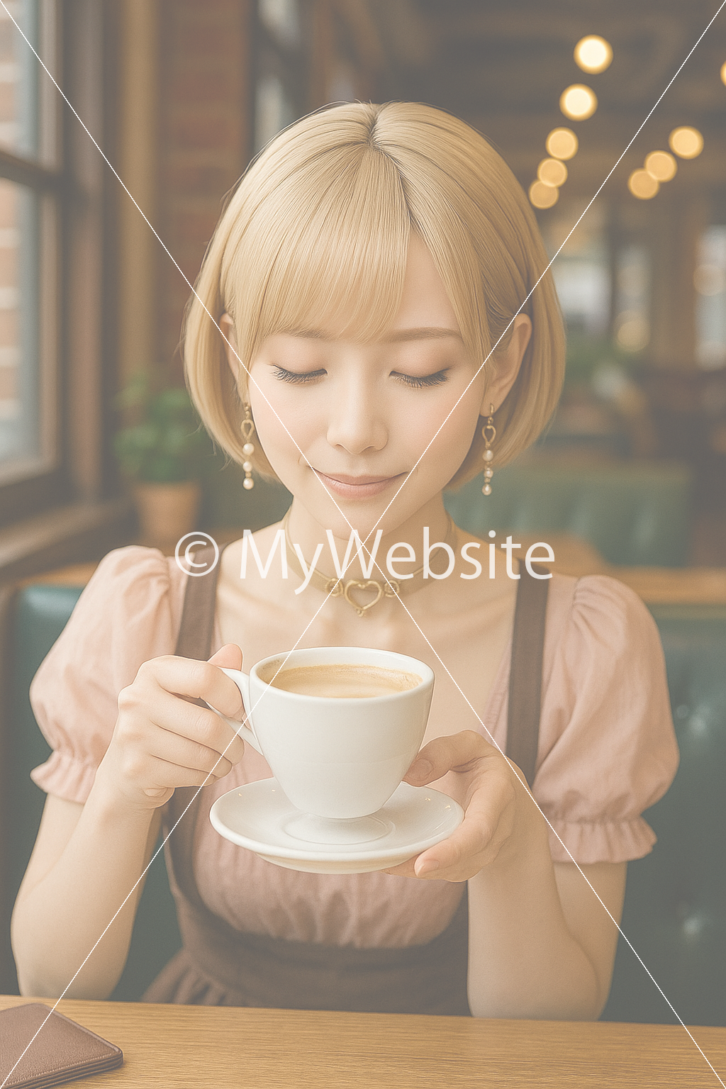 タイトル:カフェでコーヒーを飲む女性1