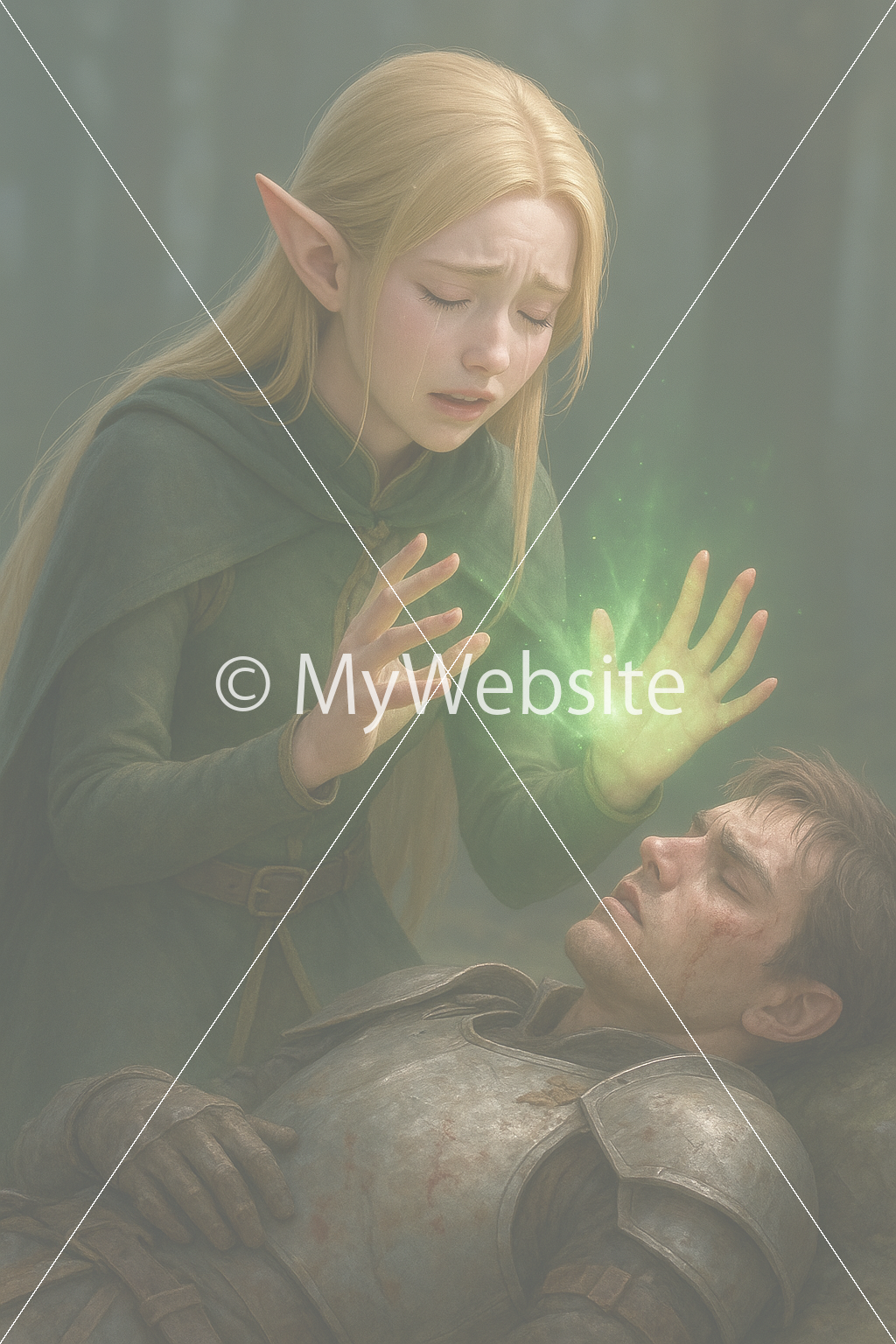 タイトル:傷を癒すエルフの女性