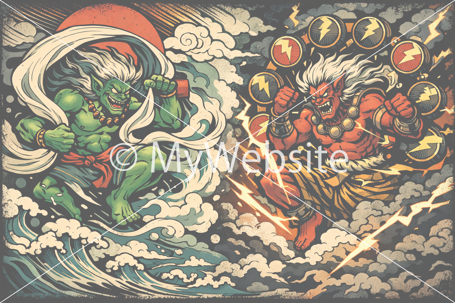 風神,雷神,日本画,カッコいい