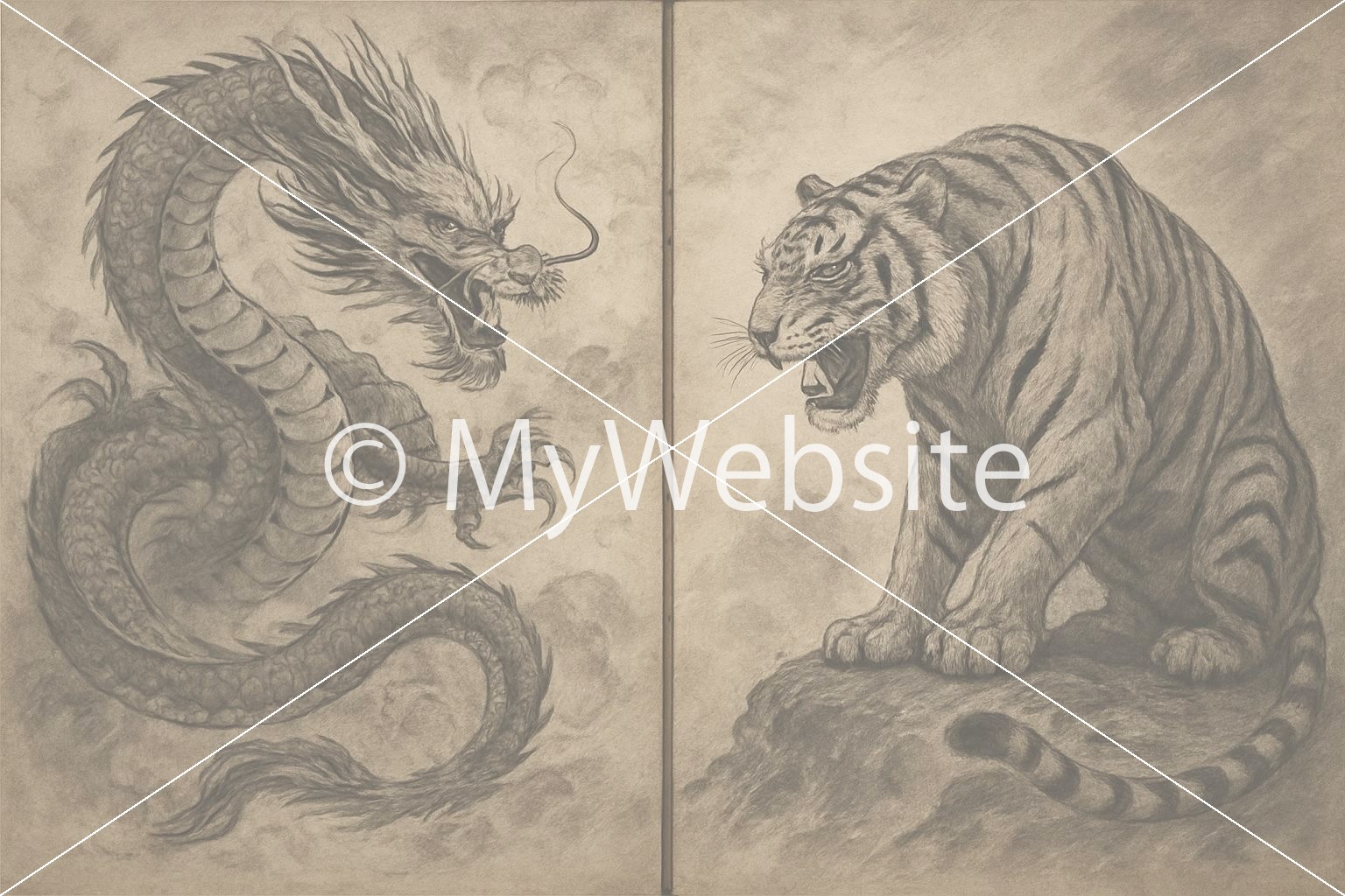 水墨画,虎と龍,かっこいい