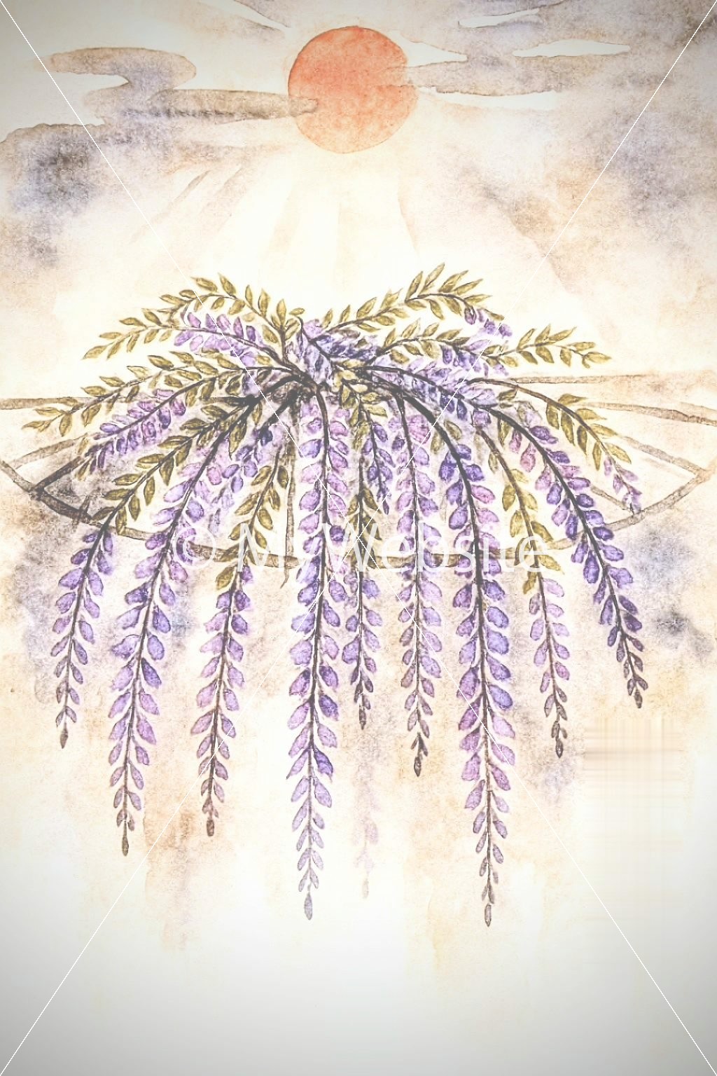 藤の花,水墨画,スマホ壁紙,綺麗