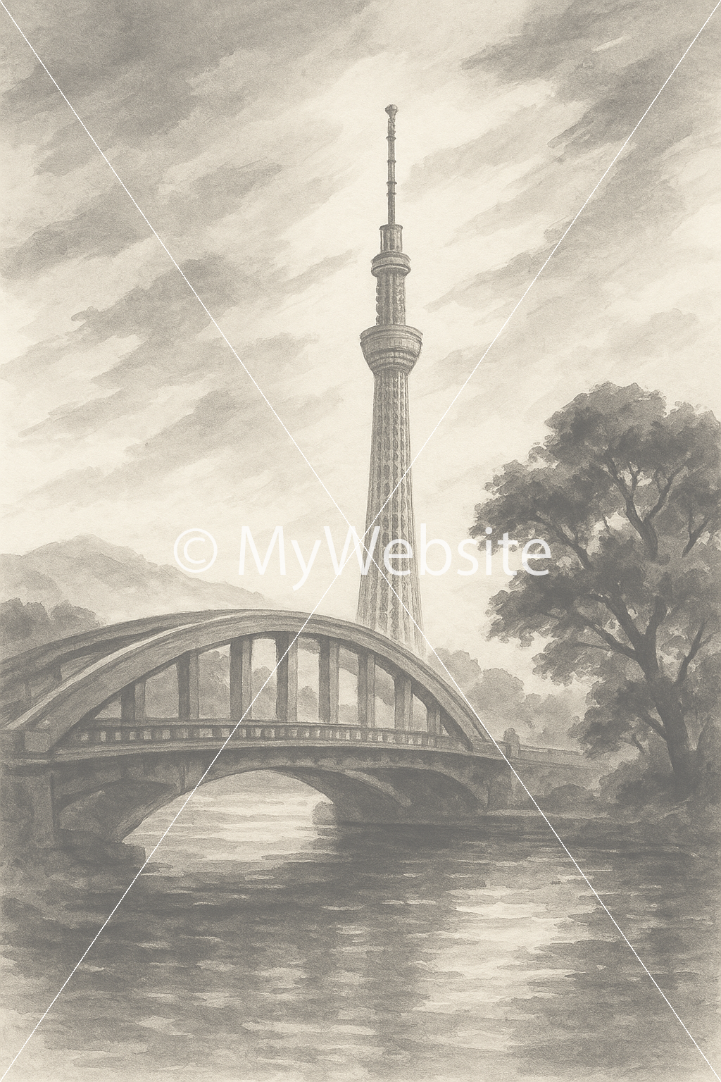 水墨画,スカイツリー,綺麗