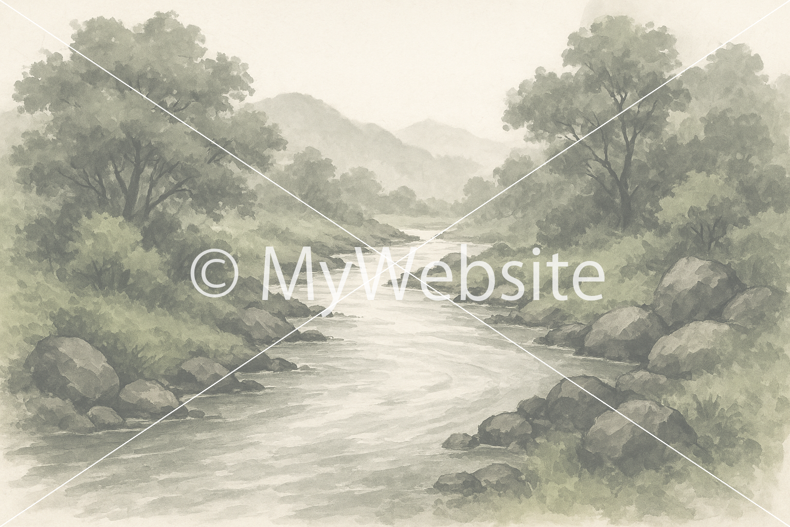 水墨画,河川,綺麗